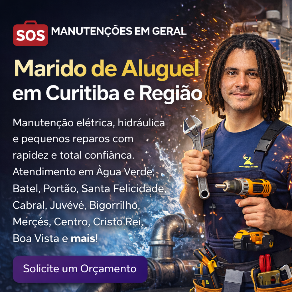 Com experiência prática e uso das ferramentas adequadas, garantimos um serviço confiável, transparente e com excelente custo-benefício. Se você procura um marido de aluguel em Curitiba que realmente resolva o problema, a SOS Manutenções em Geral está pronta para atender com profissionalismo e responsabilidade.