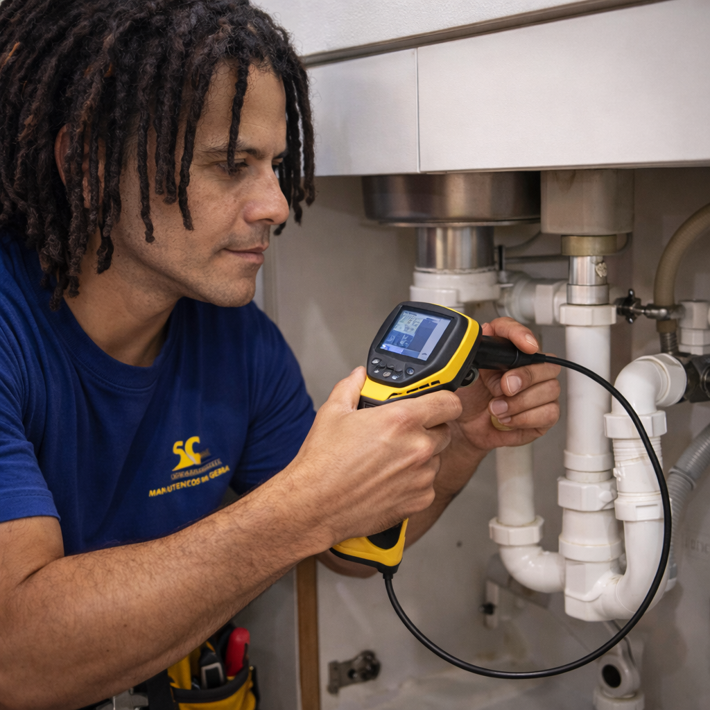 Antes de qualquer reparo hidráulico, realizamos um diagnóstico preciso para identificar a origem real do problema. A SOS Manutenções em Geral atua em Curitiba e região utilizando técnicas adequadas para localizar vazamentos, falhas em sifões, conexões mal vedadas e problemas ocultos na tubulação.